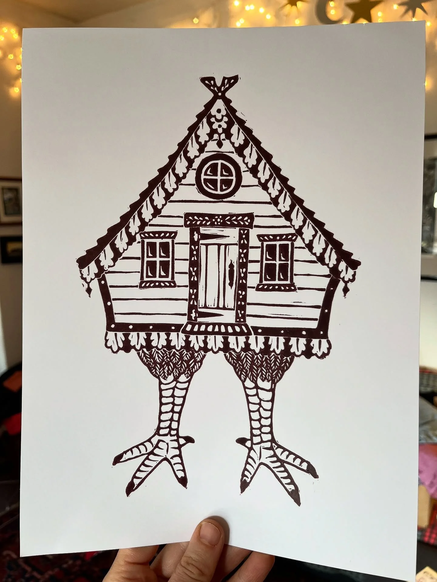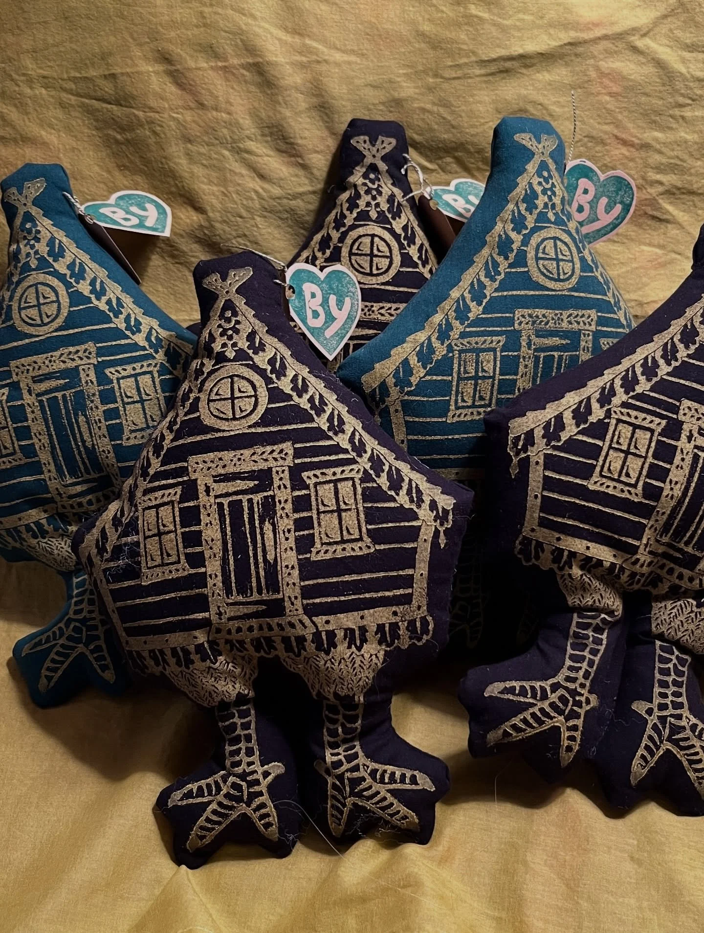 Scroll down to explore illustrations, bandana designs, block prints on paper, and the making of my Baba Yaga House tent.