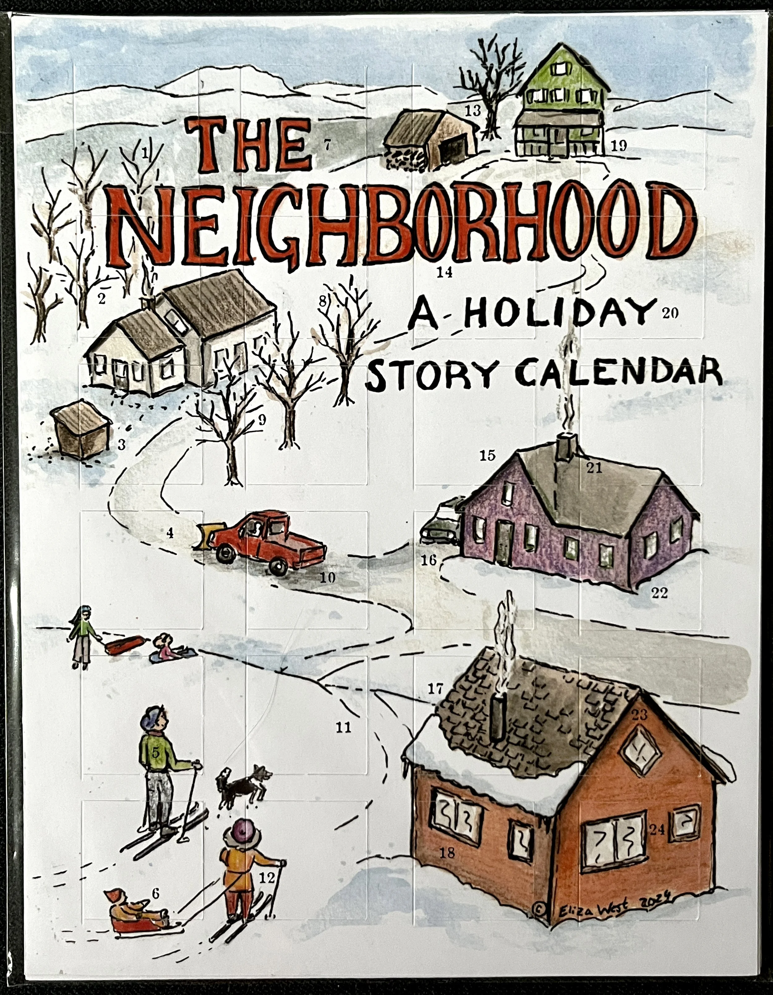 Since 2015, each fall I have drawn a holiday “story calendar” for my friends and family. Taking inspiration from advent calendars, but not explicitly tied to Christian tradition, each calendar tells a story in pictures, drawing on important themes in my life from the past year.